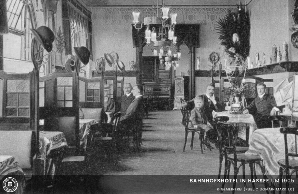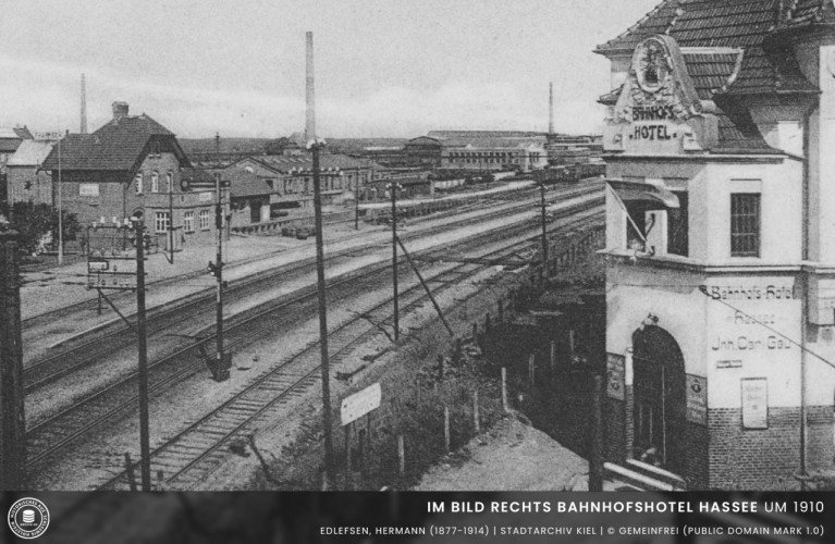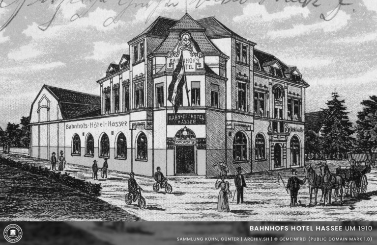 Das ehemalige Bahnhofshotel Hassee befindet sich am Bahnübergang in der Saarbrückenstraße ehemals Hasseer Weg. Um 1910 wird Emil Herschel als Besitzer erwähnt. Heute befindet sich in den ehemaligen Gasträumen ein Döner. Der Saalanbau existiert nicht mehr.