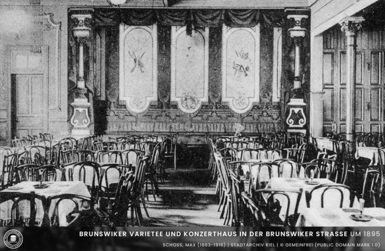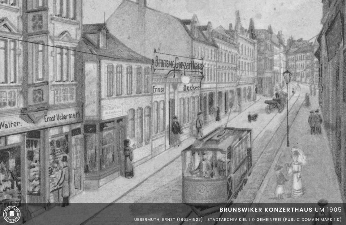 Das Brunswiker Konzerthaus in der Brunswiker Straße war zunächst im Besitz von R. Rüdiger. Um die Jahrhundertwende war es Ernst Becker der das Konzerthaus und das dazugehörige Restaurant "Zum Spaten" betrieb. In den 20er Jahren und bis zum Zweiten Weltkrieg befand sich in dem Haus das Tanzlokal Halali. Während des Krieges wurde das Haus durch Bomben zerstört.