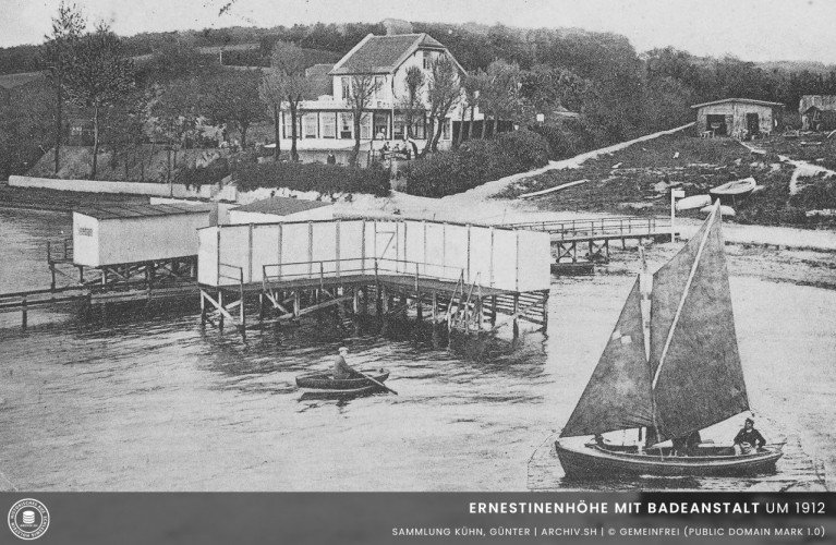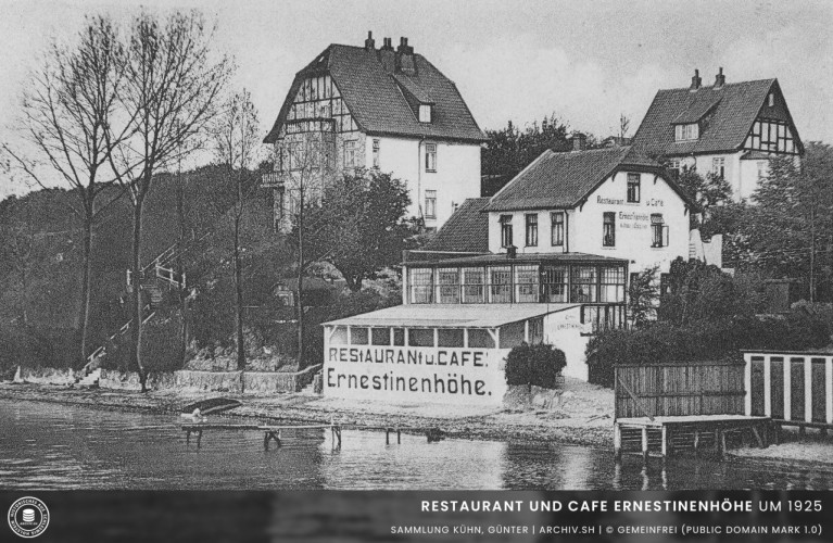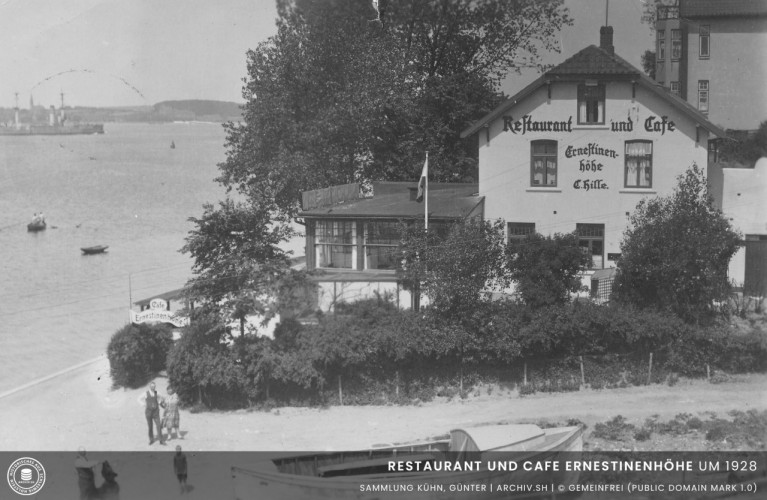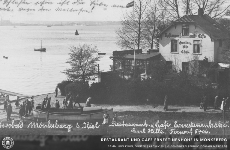 Im Jahr 1889 kaufte Ernst Stölting das Grundstück am Mönkeberger Strand und errichtete ein Cafe, das er nach den Namen seiner Frau Ernestine benannte. 1898 wurde das Haus durch einen Anbau erweitert und 1910 wurde ein Stockwerk hinzugefügt. Zu dem Cafe gehörte auch eine Badeanstalt, welche vorher als Ballastbrücke diente. Es handelte sich um eine von drei Ballastbrücken, an denen Schuten anlegten um Sand vom Stangenberg und Schönbrehm aufzunehmen, um ihn gegenüber zur Baustelle der Holtenauer Kanalschleusen zu bringen.