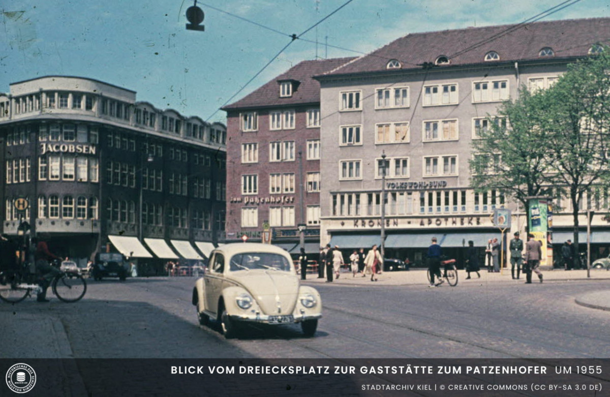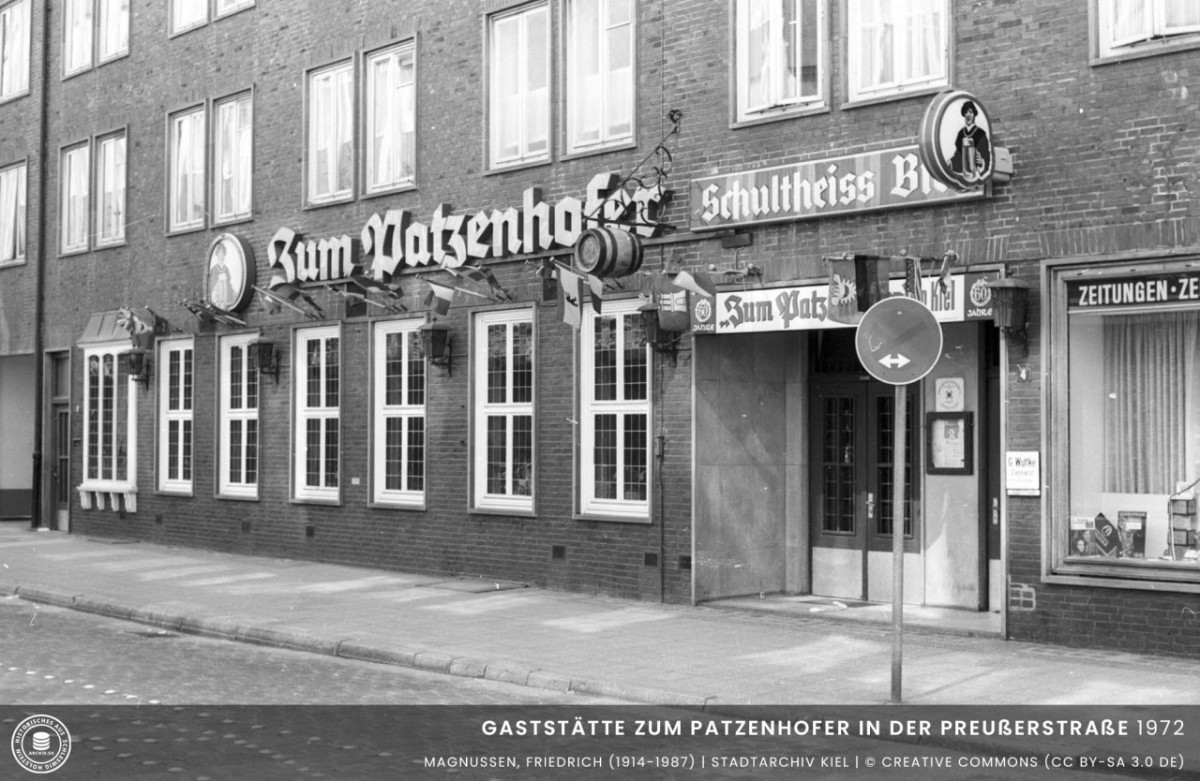 Mit der Eröffnung einer Niederlassung der Berliner "Aktien-Brauerei-Gesellschaft Friedrichshöhe vorm. Patzenhofer" im Hinterhof in der Wilhelminenstraße 1, wurde schräg gegenüber die Gaststätte "Zum Patzenhofer" als Brauereiausschank eröffnet. Die damalige Anschrift war Holtenauer Straße 10, wozu die Preußerstr. 2-6 zählte. Besitzer des Hauses war der Kaufmann H. L. C. Ingwersen. Der erste Wirt der Gaststätte war Arno Dommers. 1914 wird Arno Kretschmar als Inhaber genannt. 1923 ist es Hans Lammers und im Jahr 1933 wird der Gastwirt Bernhard Merkentrup als Inhaber erwähnt. Merkentrup war seit 1932 ebenfalls Inhaber des Hotels Seeblick in Möltenort. Er kam aus Hamburg, wo er das Alster Cafe und das Cafe Börse betrieb.